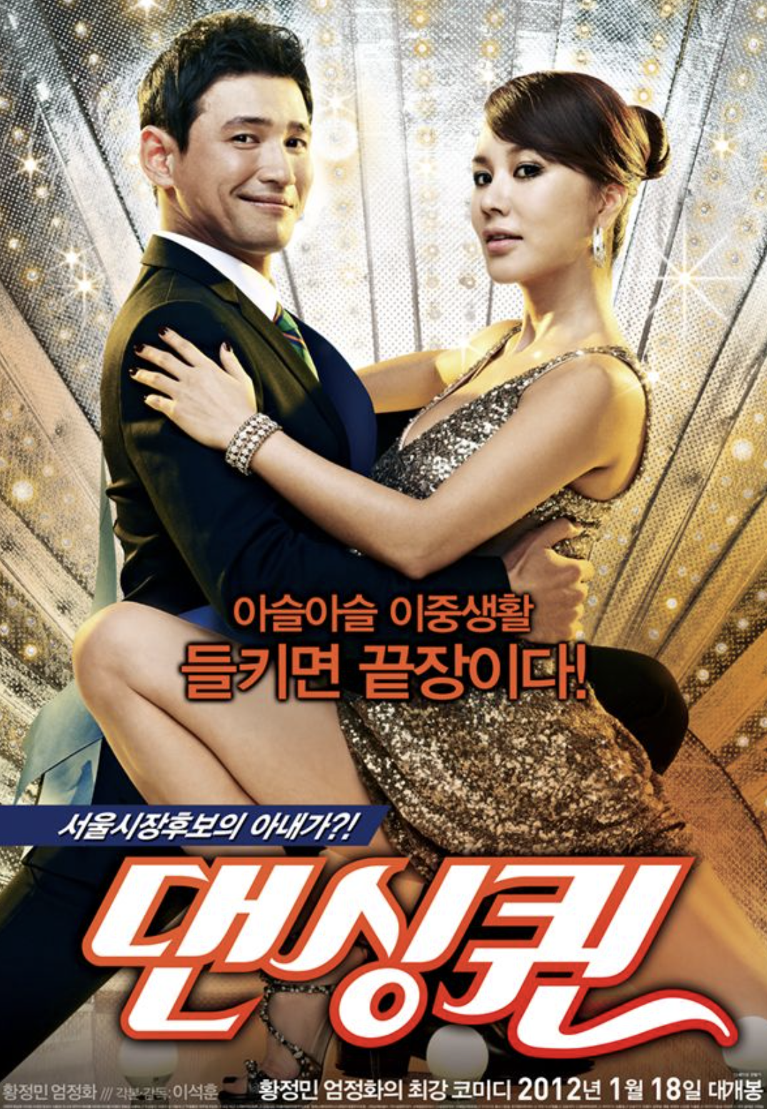 2012년에 개봉한 한국 코미디 영화이고, 넷플릭스에서 볼 수 있다. 특이한 점은 극 중 주연배우의 이름이 실제 이름과 동일하게 사용되었다는 것이다. 엄정화, 황정민이 주연배우를 맡았으며 조연배우로는 이한위, 정성화, 라미란, 이대연, 정규수, 서동원, 오나라, 최우리, 한수아, 이아린 등이 있다. 특별출연으로 이효리, 길이 출연하였으며, 우정출연으로는 마동석, 조달환이 출연하였다. 댄싱퀸 영화는 단순 코미디 영화가 아닌 감동이 있고 스토리가 있는 코미디 영화이다. 특히 결말이 열린 결말로 관객들에게 생각을 하게 만들어준 영화라 보고 나면 여운이 더 길게 남는 영화라는 생각이 든다. 개봉당시 405만 명의 관객수를 달성하였으며, 2012년 48회 백상예술대상(영화 여자최우수연기상)에서 수상을 하였다.