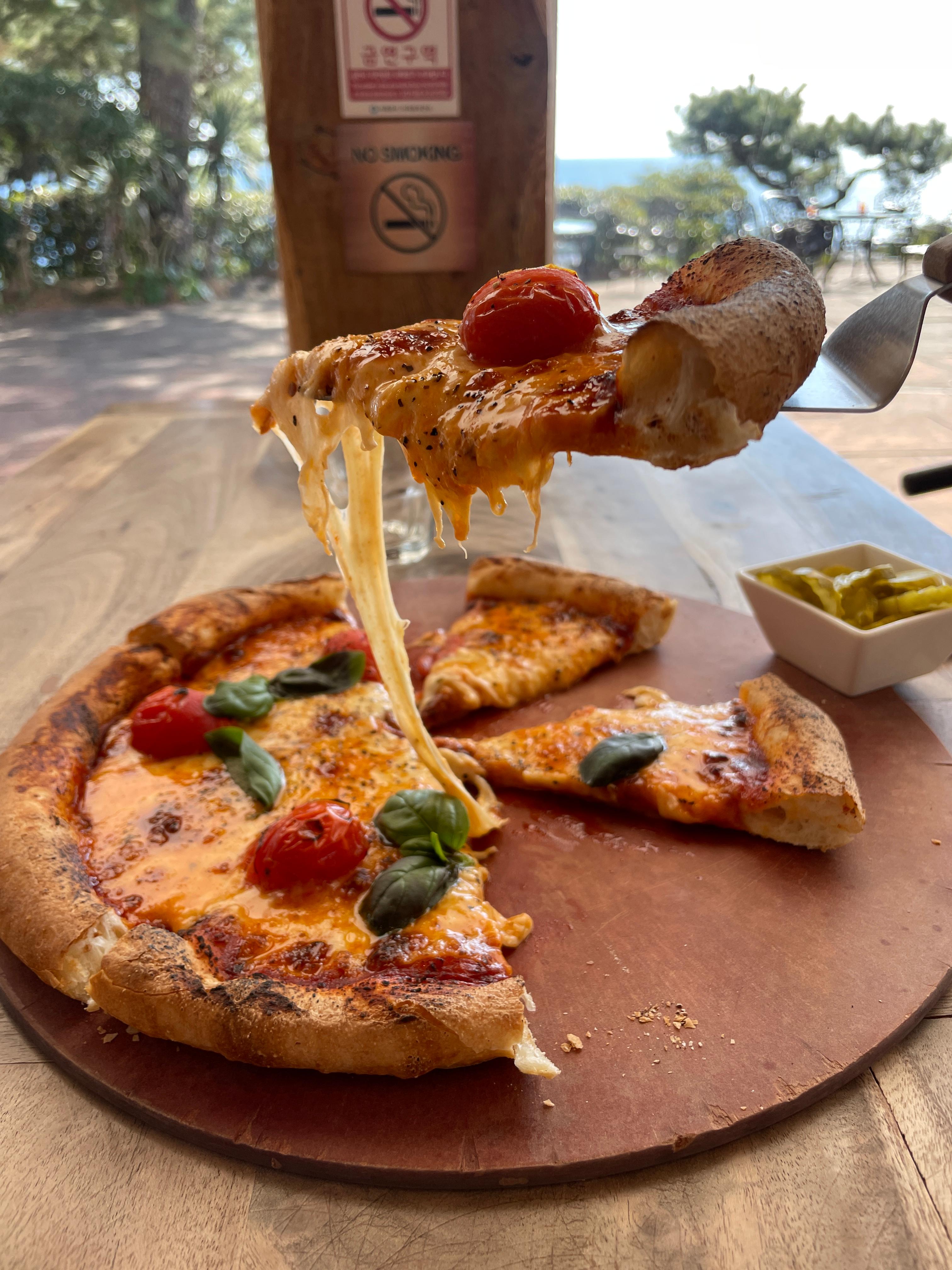 바로구워나온피자를 바다를 보며 먹는 이 맛