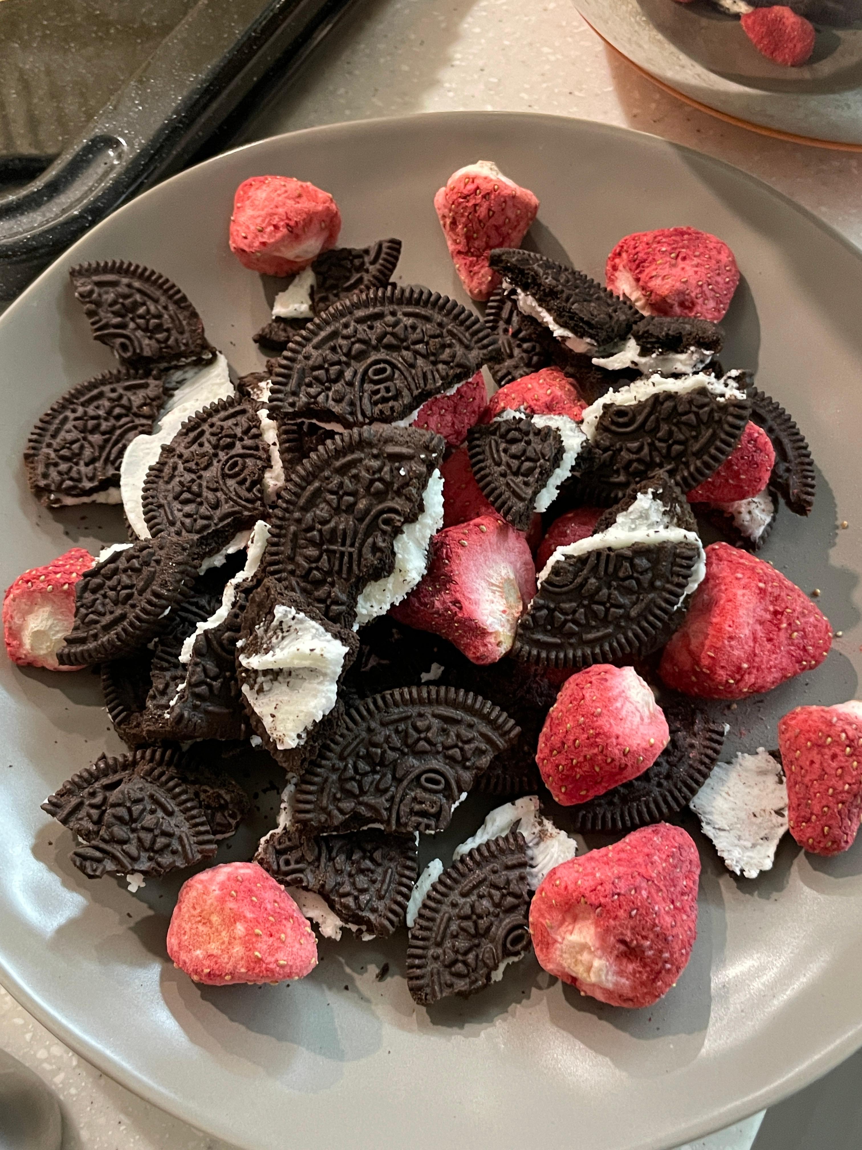 오레오만 넣으면 너무 달거같아 상큼한 동결건조 딸기를 넣었습니다