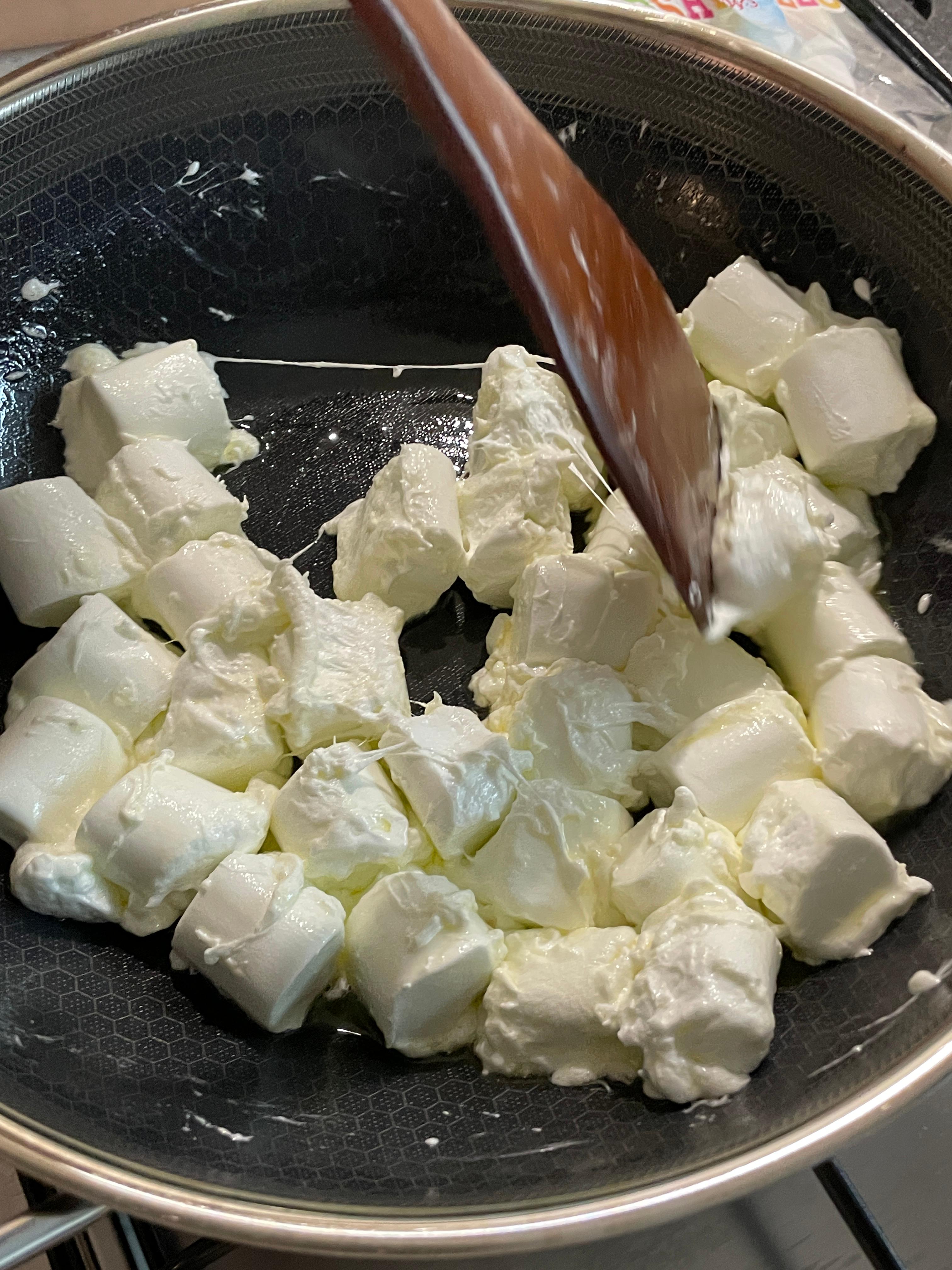 1. 불을 최대한 약하게 틀어 버터와 마시멜로우를 넣고 잘 섞어줍니다.