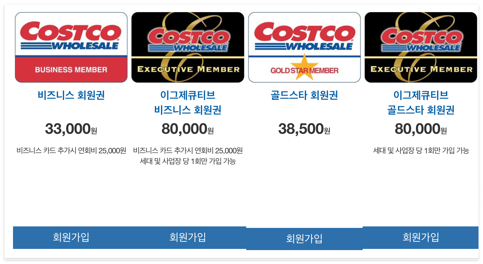 * 코스트코 회원종류 및 연회비