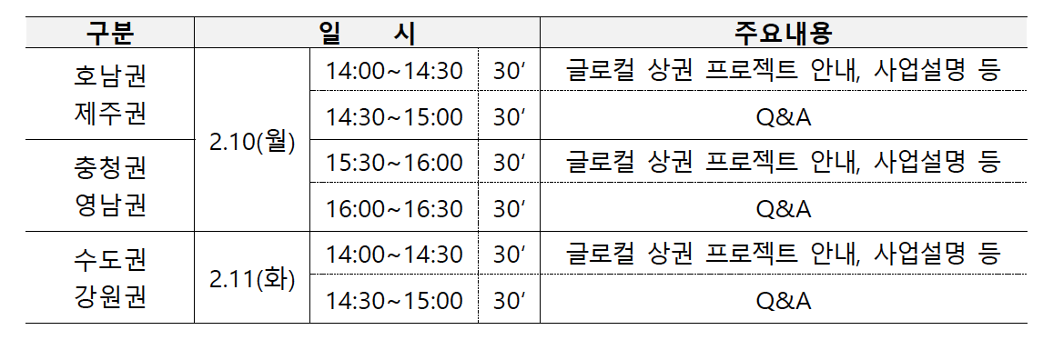 - 일시 : 2025년2월10일(월) [호남권*제주권][충청권*영남권] / 2월11일(화)[수도권*강원권]